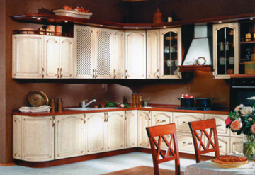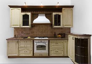 Кухня «Колизей» Кухня впрованском стиле. Несет в себетепло, характерное для вещей, обладающих памятью. Массив акации, отделка по технологии «Де Каппе» (искусственно состаренное дерево). Более 20 классических моделей фасадов из массива дерева производства Италии.