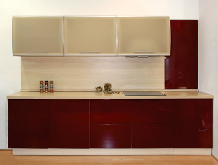 Кухня «Гледи 2» Фасады из ЛДСП (Германия), ламинированной пластиком, по периметру обработаны кромкой ПВХ. Многообразие цветов и фактур (около 500). Пластик итальянских компаний LIRI и ABET. Используется фурнитура и механизмы ведущих мировых производителей: BLUM, KESSEBOMER.