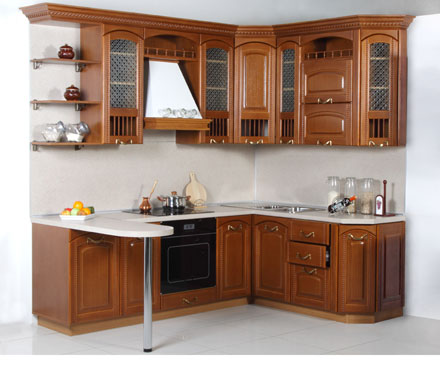 Фасады: массив сосны Столешница: постформинг Мойка: нержавеющая сталь Пристеночный плинтус: алюминиевый Рабочая стена: пластик Классическую кухню характеризуют правильные симметричные формы, полки, шкафы, столешницы. В интерьер этой модели прекрасно вписываются шкафы, дверцы которых выполнены в витражной технике. Они придадут Вашей кухне неповторимость и эксклюзивность.