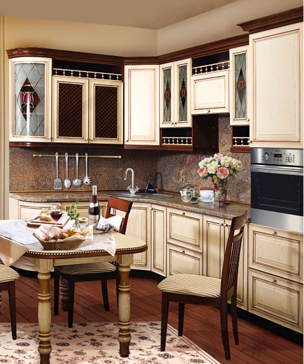 Стильные, необыкновенно элегантные и сдержанные в своем исполнении - кухни Белоруссии, украшенные фасадами с нанесением патины, станут подлинным украшением любого дома. О том, что над представленными в каталоге конструкциями трудились настоящие мастера, талантливые оформители-дизайнеры и опытные конструкторы, заявляют лаконичные и изящные линии, плавные очертания и гармоничные сочетания цветов и оттенков. Восхитительный эффект патинирования, придающий конструкциям благородный вид, обуславливает органичную интеграцию кухонной мебели в интерьеры стилей «классика» или «ретро». Отдельным преимуществом мебели, где используются патинирование и лакирование, является устойчивость составляющих ее элементов перед механическим, химическим и тепловым воздействием. Такие изделия не притязательны к уходу, и в то же время - они не боятся износа, не подвержены практически неизбежному со временем истиранию и выцветанию, появлению неприятных царапин, мелких сколов и трещин на поверхности. Материалы, которые используются для таких гарнитуров, характеризуются безукоризненной надежностью, абсолютной экологичностью, высокими прочностными свойствами, что обуславливает продолжительный срок беспроблемной эксплуатации всей конструкции. Дизайнерами, проектирующими кухни Зов, тщательно продумывается каждая деталь, отчего готовые гарнитуры примечательны не только своим восхитительным внешним видом, но и столь необходимой в современных квартирах многофункциональностью, позволяющей рационально использовать каждый метр даже небольшого кухонного помещения.